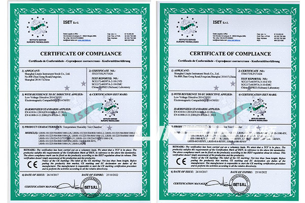 CE認(rèn)證是產(chǎn)品進(jìn)入歐盟市場所必須的安全認(rèn)證,林頻儀器為順應(yīng)歐盟市場需求,擴大設(shè)備出口能力,經(jīng)過公司員工的共同努力,在技術(shù)儲備和管理工作進(jìn)行系統(tǒng)完善后,公司順利通過歐盟CE認(rèn)證證書。CE證書的獲得驗證了林頻儀器生產(chǎn)的環(huán)境試驗箱已經(jīng)達(dá)到歐盟指令規(guī)定的要求,是企業(yè)對用戶的一種承諾,增加了用戶對設(shè)備的信任程度,在質(zhì)量性能和安全性能方面都符合歐盟國家的出口質(zhì)量標(biāo)準(zhǔn),為公司大力開拓國際市場奠定了良好的基礎(chǔ)。